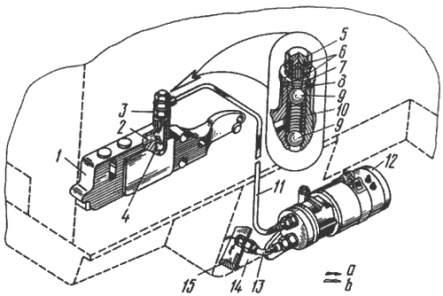 Маслозакачивающий насос МЗН-2 из резервуара 31 (см. рис. 15) картера по трубопроводу 11 (см. рис. 52) подает масло к маслораспределительной плите 1.
