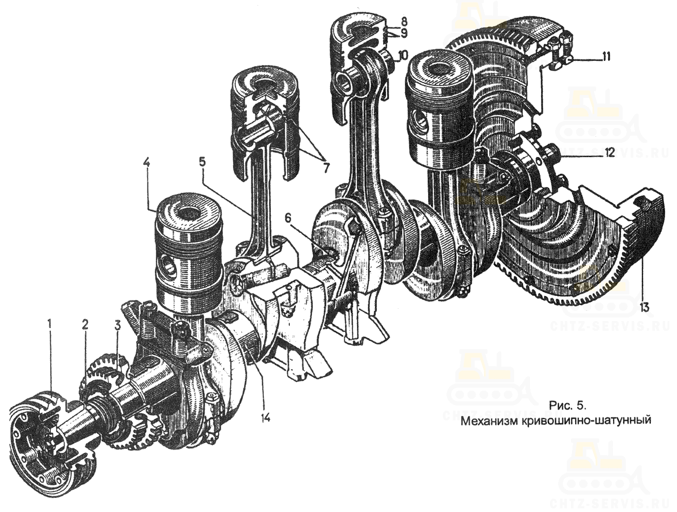5 - шатун;