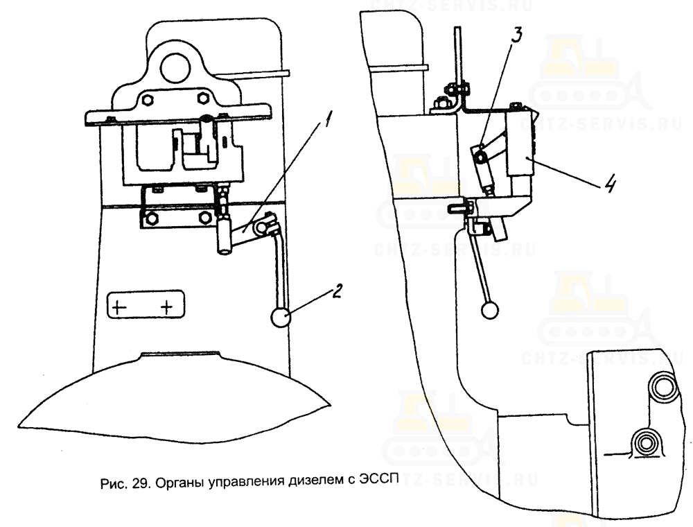 Органами управления дизелем с ЭССП являются: рукоятка 2 (рис.29) механизма декомпрессора, рычаг 20 (рис.30) регулятора топливного насоса высокого давления.