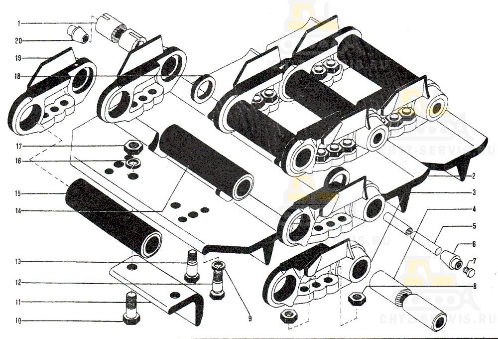 | 13 | 700-28-233 Болт башмака CпM20×1,5×78 | 44 | 0,280 | |
