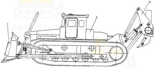 1-бульдозерное оборудование, 2-трактор, 3-рыхлительное оборудование ДЭТ-250