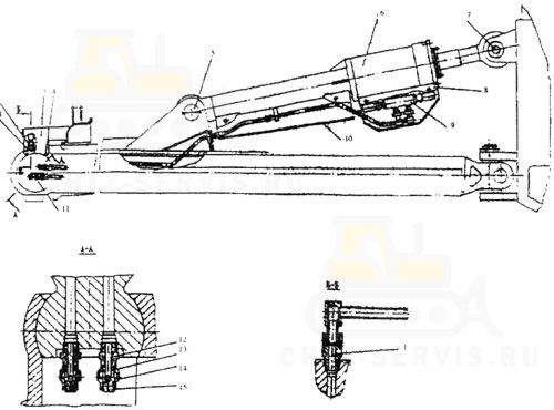 - гидроцилиндром 749-72-189СП изменения вылета зуба расстопорить его;