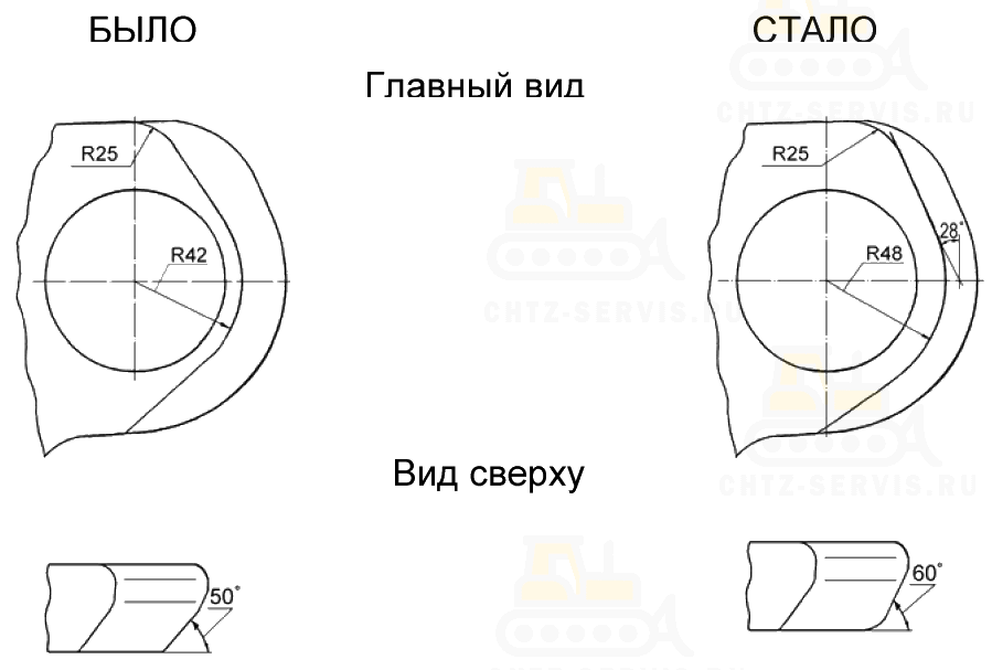 С целью повышения прочности проушин звеньев 748-22-75/76 гусеничных цепей трактора ДЭТ-250М изменены размеры поковки.