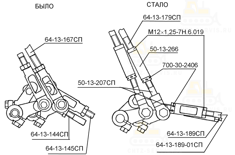 - тяги 64-13-179СП, 64-13-189СП/189-01СП и гайки М12х1.25-7Н.6.019 с правой резьбой.