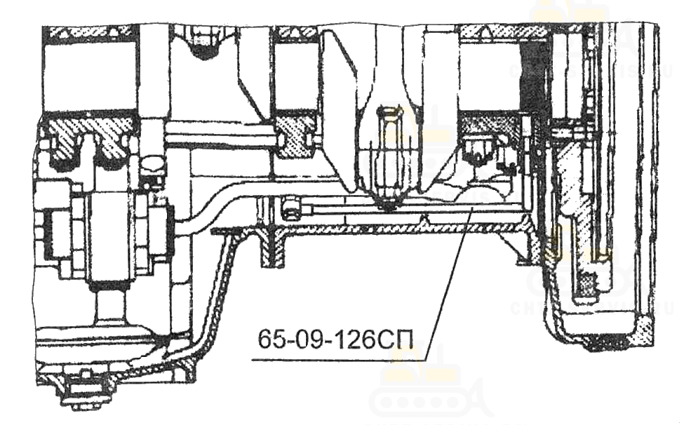 Для исключения попадания продуктов отстоя в масляную магистраль двигателя, в каналы корпуса фильтра 51-09-255СП, ведущие к перепускному клапану, установлены трубки 65-09-42 и 65-09-43, создающие полость отстоя (трубка 65-09-43 на рисунке не показана).