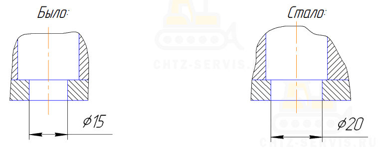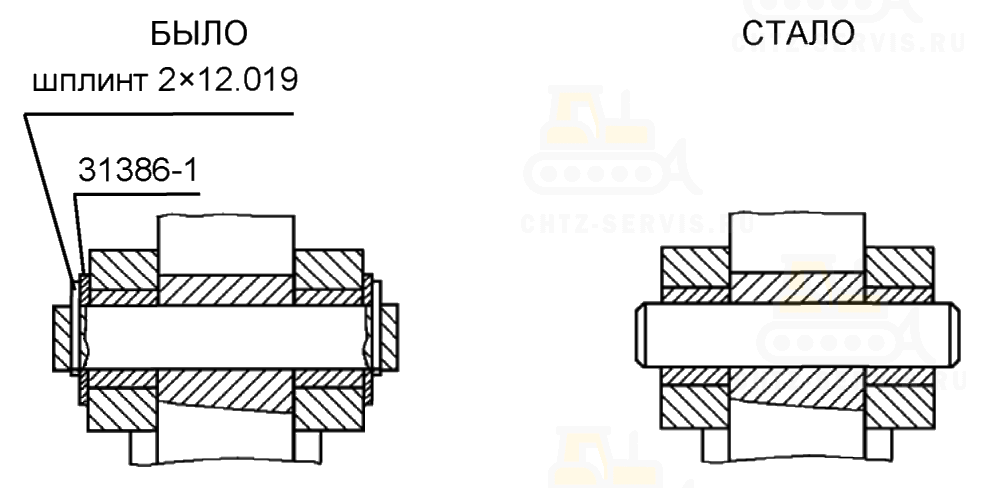 С целью исключения случаев рассухаривания уплотнений концевого подшипника бортового редуктора увеличен натяг в сопряжении палец 15-19-36 - втулка 20-19-18