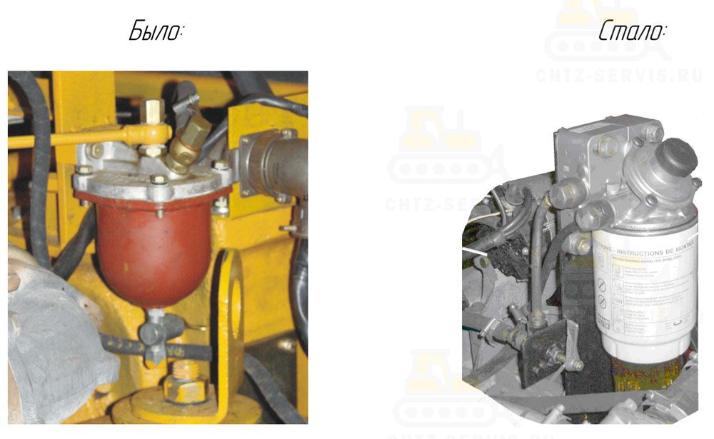 Для удобства техобслуживания сливная пробка 700-37-2281 в топливном фильтре грубой очистки заменена краном ПП6-1 ОСТ 37.001.241-81.