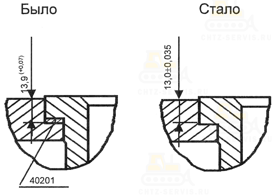Для стабилизации выступания гильзы цилиндра над блоком и обеспечения надежности уплотнения газового стыка аннулирована медная прокладка 40201 под буртом гильзы с изменением глубины выточки в блоке.