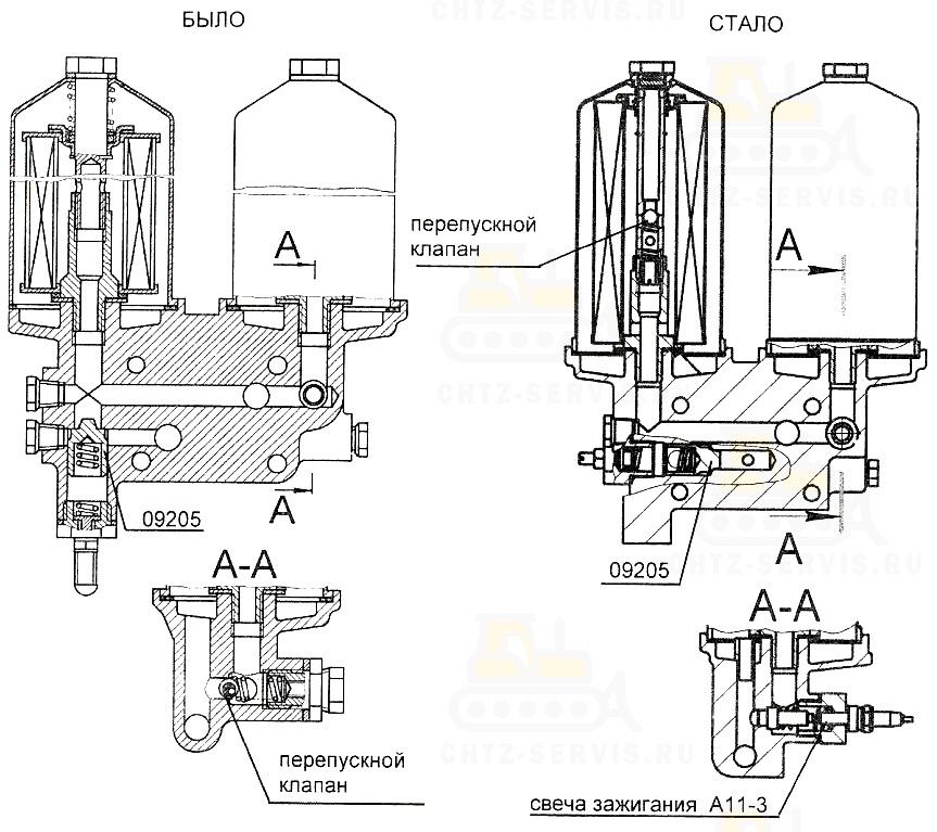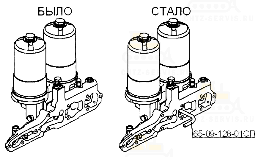 С целью улучшения операций техобслуживания установка фильтра грубой очистки топлива перенесена на маслораспределительную плиту, что повлекло за собой следующие изменения: