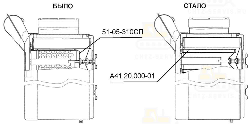 С целью забора воздуха из зоны меньшей запыленности увеличена высота воздухозаборника 51-05-232 со 150 до 300 мм. Обозначение и взаимозаменяемость воздухозаборников сохранены.