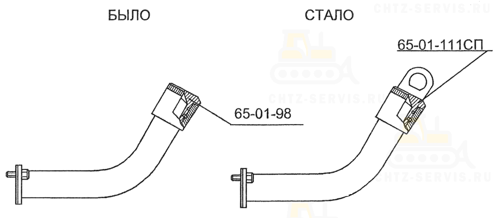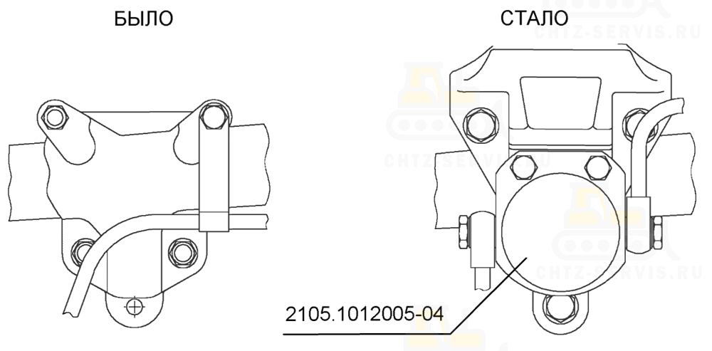 Для удобства обслуживания и исключения попадания масла на землю при его замене, пробки 700-37-2154 сливных отверстий корпусов редукторов лебедки трубоукладчика заменены кранами, для установки которых введены переходники 700-41-4030.