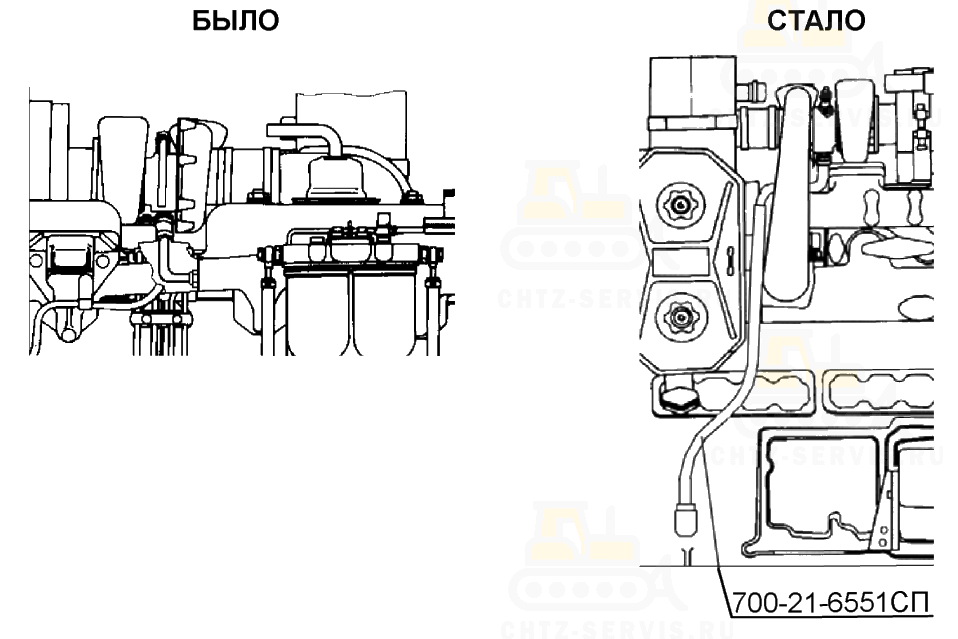 С целью повышения надежности уплотнения под турбокомпрессор ТКР 8,5С введена прокладка 700-40-8750СП с окантовкой взамен прокладки 700-40-7386, без потери взаимозаменяемости.