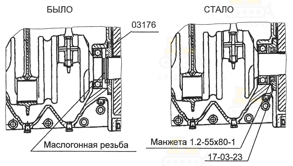 С целью повышения надежности уплотнения валика привода магнето пускового двигателя, кожаный сальник 40251СП заменен резинокаркасной манжетой 2.2-22x40-2 ГОСТ 8752-79, с изменением посадочных размеров в корпусе распределительных шестерен 17-01-114 и на валике 10568. Новые корпус и валик имеют обозначения соответственно 17-01-114-01 и 10568-01.