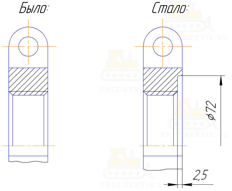 Для повышения прочности увеличена на 5,5 мм толщина крышки 50-19-146 корпуса подшипника ведущего фланца бортового редуктора.