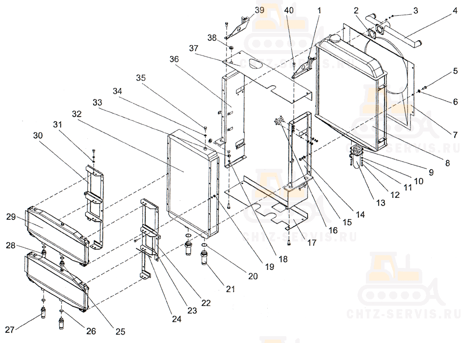 | 8 | - | Радиатор водяной 130У.13.010-1 ТУ 23.46.1771.059-89Е | 1 | 43,6 |