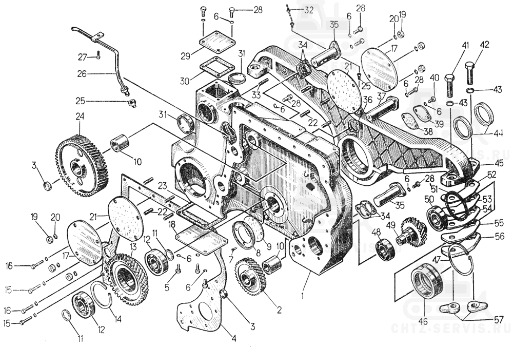 Кожух шестерен распределения и передняя опора дизеля на Т-130