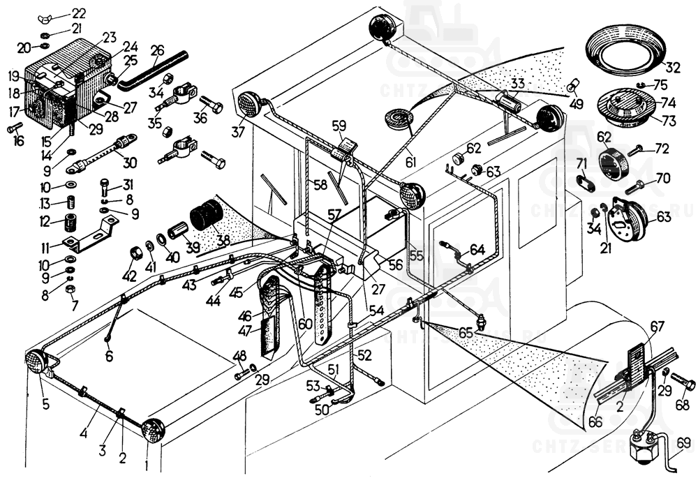 | 23 | — | Батарея аккумуляторная 6СТ-75ЭМС | 1 |