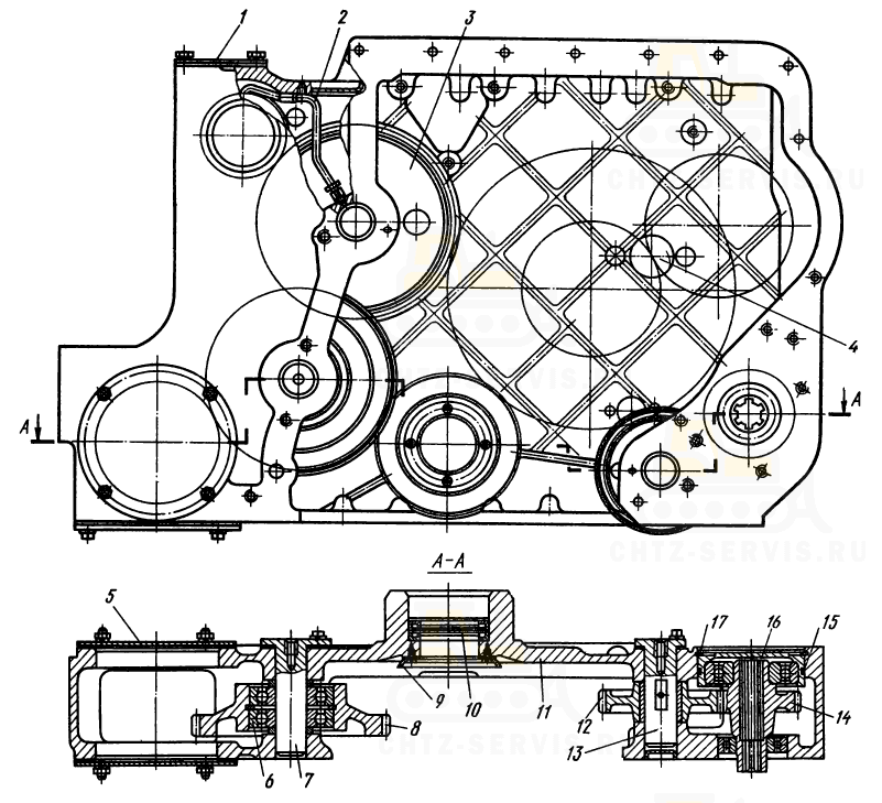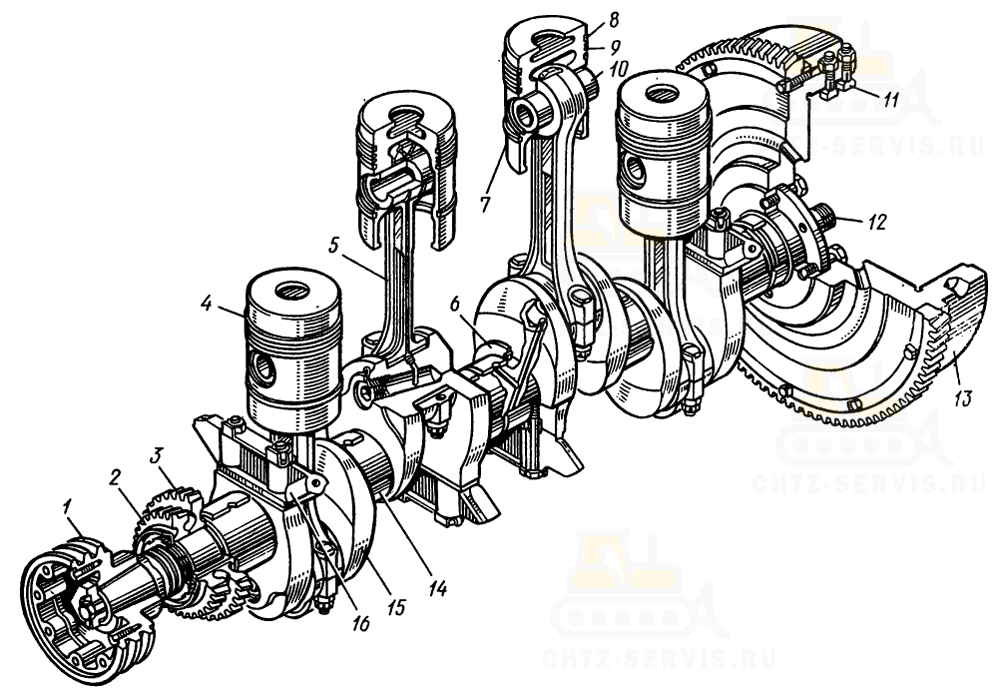 5 — шестерня привода масляного насоса и уравновешивающего механизма,