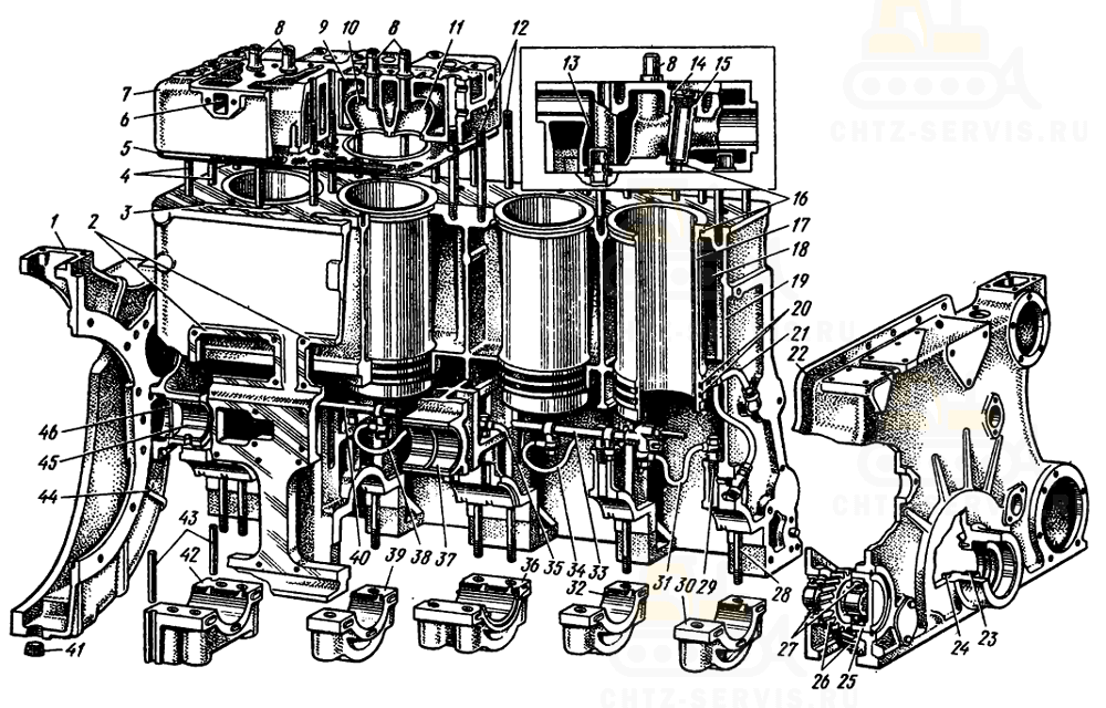 16 — резиновое уплотнительное кольцо гильзы цилиндров,