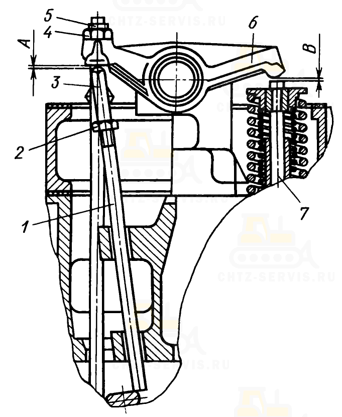 3 — трубка подвода масла к валику коромысел и коромыслам,