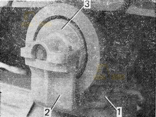 На тракторе Т-170.01 в качестве поддерживающих катков 24-21-169сп применяются опорные катки 3 (рис. 284), которые устанавливаются своими крышками на кронштейне 2, закрепленном на тележке гусеницы. Момент затяжки болтов 1 крепления кронштейна к раме тележки 220...280 Н-м (22...28 кгс • м).