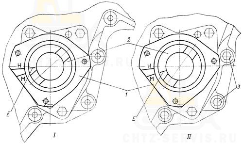 Совместите метку Е (риску) на торце валика привода магнето 2 (рис. 122) с меткой Я на фланце кронштейна магнето 1.