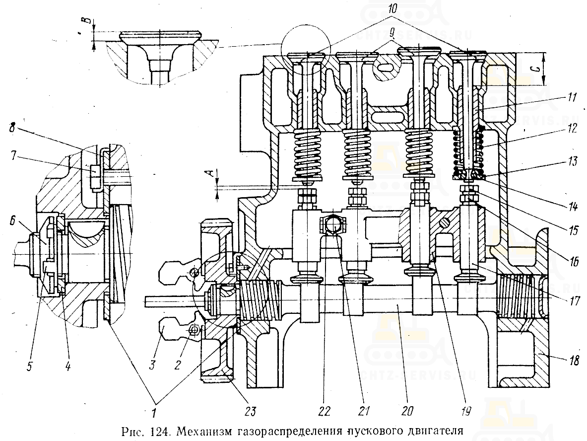 Снятие распределительного валика с шестерней П-23У