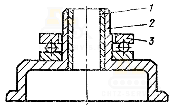 Установите муфту 2 ( рис. 175 ) поверхностью дна тарелки на подставку, запрессуйте втулку 1 и посадите нижнее кольцо подшипника 3 на хвостовик муфты. Смажьте сепаратор с шариками маслом и соберите подшипник на муфте. Проверьте легкость вращения подшипника, прижимая верхнее кольцо рукой к шарикам. Смажьте маслом поверхность втулки муфты, протрите поверхность валика и наденьте муфту регулятора на валик тарелкой в сторону грузов. Муфта должна легко, без заеданий, перемещаться по валику регулятора и поворачиваться на нем.