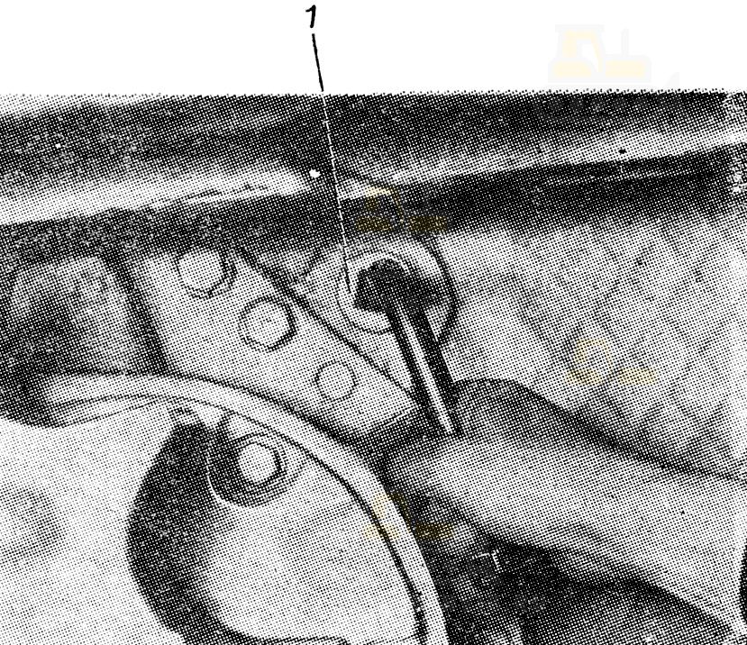 Снимите кабину, топливный бак 50-25-180сп трактора. Выверните болты и снимите крышки верхних и задних люков корпуса бортовых фрикционов. Отсоедините от двуплечих рычагов тяги тормоза. Отверните регулировочные гайки с вилок тормозных лент и снимите двуплечие рычаги с вилками с кронштейнов. Выверните технологическую пробку 1 ( рис. 229 ) из корпуса бортовых фрикционов.