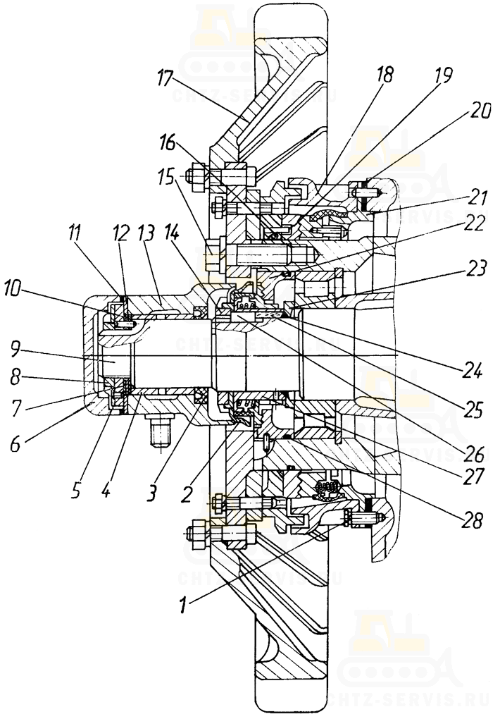 Концевой подшипник, большое и малое лабиринтные уплотнения 24-19-47 — такие же, как на тракторе Т-170.00.