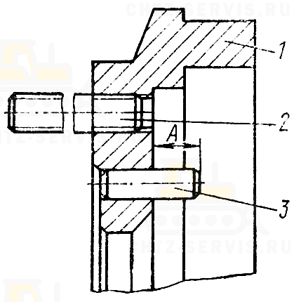 Запрессуйте в лабиринт 1 (рис. 244) три штифта 3, выдержав размер А — (14±0,2) мм. Смажьте вворачиваемую резьбовую часть шпилек 2 железным густотертым суриком и вверните шесть шпилек в лабиринт. Момент затяжки шпилек 40...70 Н-м. (4...7 кгс-м.).