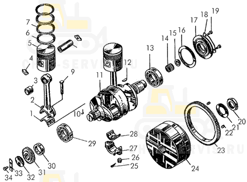 Кривошипно-шатунный механизм пускового двигателя Т-170