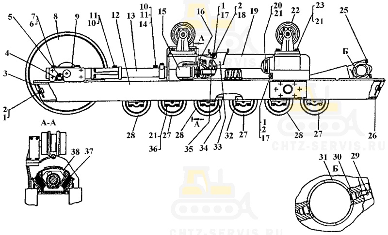Тележка гусениц 6-ти катковая Т-170 Б-170 ЧТЗ