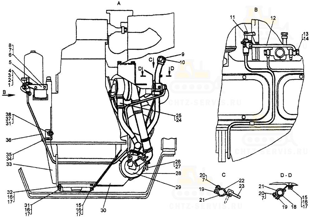| - | 64-43-6СП | Установка подогревателя ПЖД-30Е (для трактора с пусковым двигателем) | 1 |
