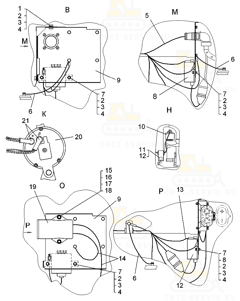 | Виды «О» и «Р» – для трактора с механической трансмиссией. | |||