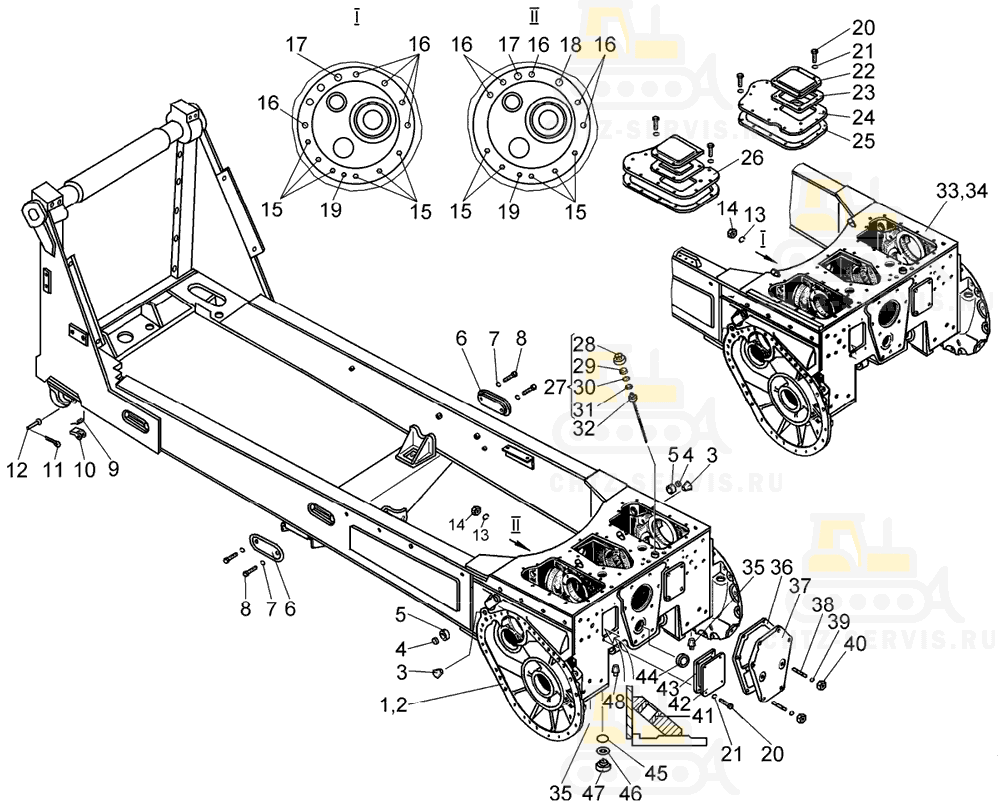 | I - Для трактора с гидромеханической трансмиссией. II - Для трактора с механической трансмиссией. | |||