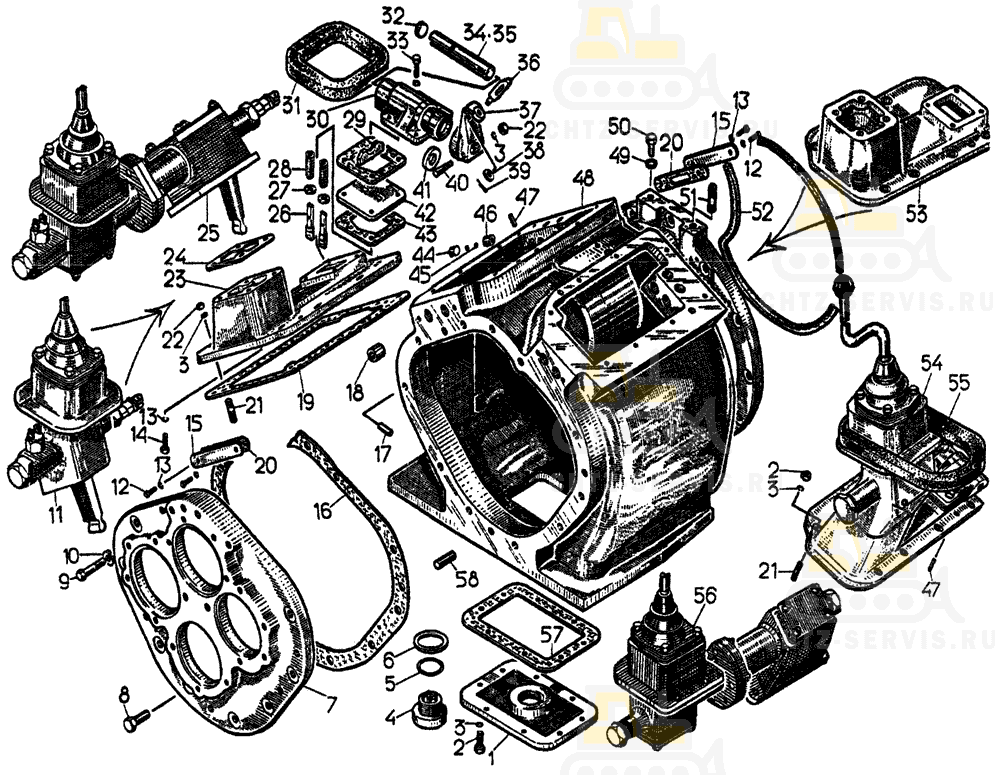 Корпус коробки передач с крышками и механизмами переключения Т10М Б10М ЧТЗ