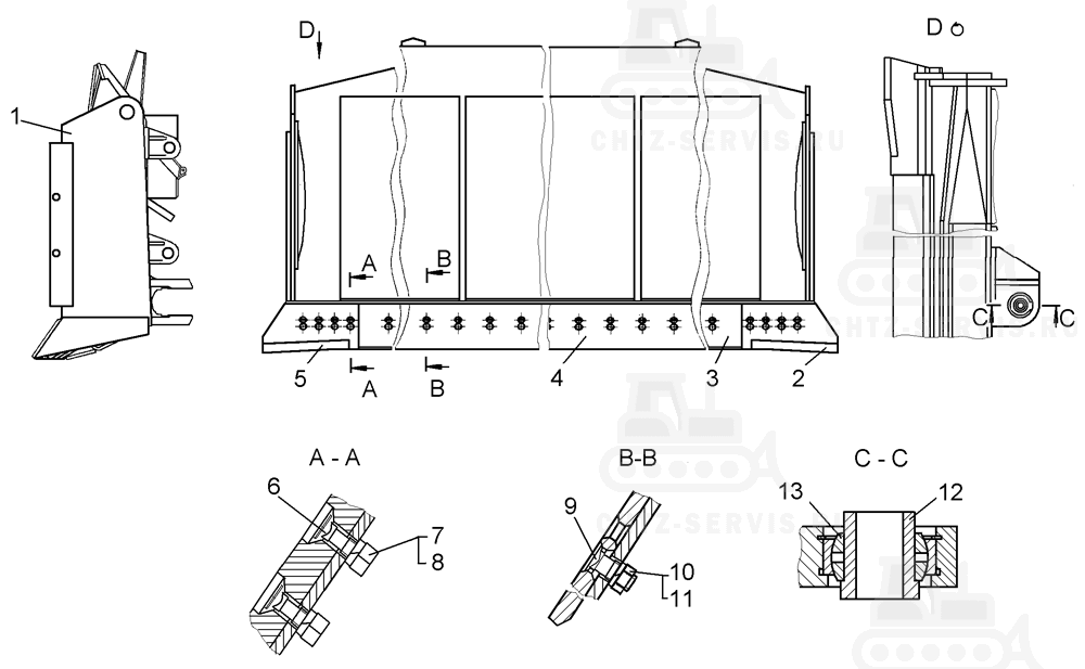 | 1 Для отвала В4. 2 Для отвала В4 с ящиком для инструмента. 3 Для отвала В4 с противоизносными накладками. 4Для отвала В4 с ящиком для инструмента и противоизносными накладками. | |||