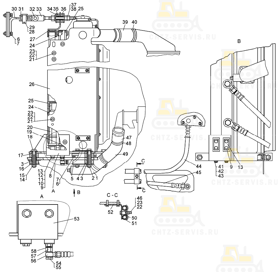 Установка радиаторов (для трактора с «прямым» потоком) Т10М Б10М ЧТЗ